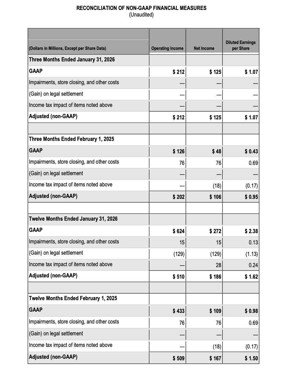 Comparisons refer to the 52-week period ended January 31, 2026 versus the 52-week period ended February 1, 2025